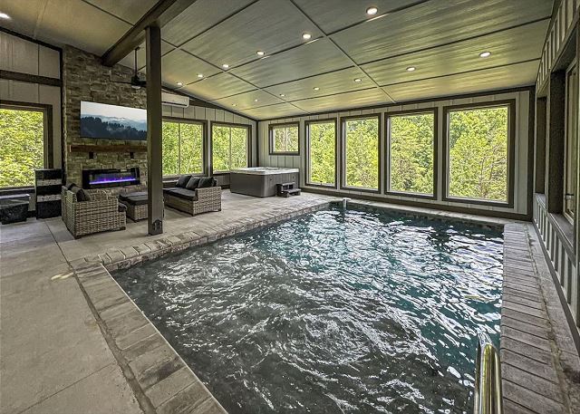 combination tub/shower, king, shower, toilet, twin/ single, autumn foliage, churches, cinemas, forests, live theater, museums, rain forests, restaurants, theme parks, water parks, waterfalls, winery tours, zoo, Dining, Game Room, Games, Ping Pong Table, Television, Video Games, Smart TV, Air Conditioning, Clothes Dryer, Fireplace, Hair Dryer, Heating, Internet, Iron & Board, Linens Provided, Living Room, Parking, Towels Provided, Washing Machine, Fire pit, Shampoo & conditioner, Wifi, Free Wifi, Coffee Maker, Dishes & Utensils, Dishwasher, Ice Maker, Kitchen, Microwave, Oven, Refrigerator, Stove, Toaster, Dining Table, Kitchen Island, antiquing, bird watching, gambling casinos, horseback riding, outlet shopping, photography, scenic drives, sight seeing, sledding, walking, ATM/bank, groceries, hospital, massage therapist, Mountain, Mountain View, Town, Balcony, Deck / Patio, Heated Pool, Hot Tub, Indoor Pool, Private Pool, bedroom, full, half, shower, fishing, fly fishing, freshwater fishing, hiking, ice skating, mountain biking, rafting, skiing, swimming, water tubing, whitewater rafting, children welcome, non smoking only, pets not allowed, Minimum Age Limit for Renters, flexible, monday, negotiable, saturday, sunday, friday, thursday, tuesday, wednesday, necessary, recommended, Dining Area, Dining Room, Adventure, Away From It All, Budget, Family, Tourist Attractions, Outdoor lighting, Smoke detectors, Carbon monoxide detector, Fire extinguisher, Enhanced cleaning practices, Clean with disinfectant, No-contact check-in and check-out, High touch surfaces cleaned with disinfectant, Towels and bedding washed in water that's at least 60sC/140sF